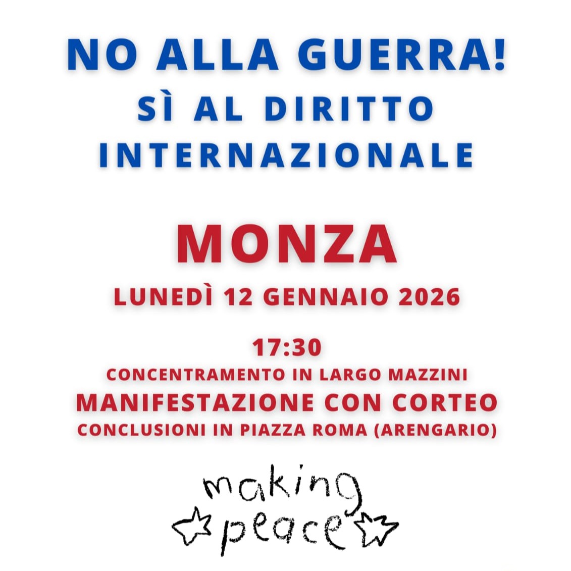 A Monza una grande manifestazione “per affermare la cultura della pace” e dire “no alla guerra e sì al Diritto Internazionale”.